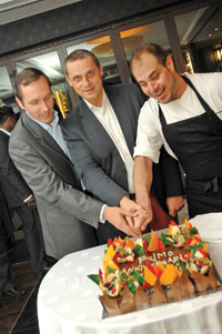 Siegfried Nierhaus, managing director of Atlas Hospitality, Chef Christian and Pasquale Baiguera, general manager of the Radisson Blu Hotel Dubai Media City, celebrate Certo’s at Souq Qaryat Al Beri, Abu Dhabi’s first anniversary.