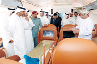 Abu Dhabi Airports Company welcomed senior government officials and trade delegations to Al Ain International Airport where Oman Air showcased one of its new Airbus A330-200s, after having established its Muscat - Al Ain route in May this year. Pictured, Abdulrazaq Al Raisi, general manager worldwide sales, Oman Air giving a tour inside the new A330.
