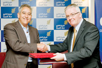 Gulf Air CEO Samer Majali and GAA CEO Tim Shattock signed the agreement under which GAA will provide a wide range of training services to airline personnel including pilots, aircraft maintenance engineers, cabin crew and ground staff.