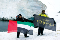 Etihad Airways’ Emirati employees Ali Al Shamsi, GM of Abu Dhabi hub, and Taryam Al Subaihi, corporate communications manager, are more than halfway through their expedition to the Antarctic, led by renowned polar explorer and environmentalist Robert Swan.