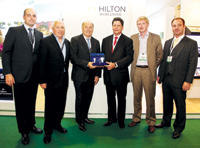 Hilton Worldwide and Destinations of the World (DOTW) celebrated their highly successful Direct-Connect partnership with Rudi Jagersbacher, area president, Middle East and Africa, Hilton Worldwide, presenting an award of appreciation to DOTW group managing director Keith Fernandez for ‘providing a dynamic, efficient and effective platform for our trade customers to access Hilton Worldwide hotels’. Pictured, Jagersbacher, centre left, with Fernandez, centre right, and colleagues.
