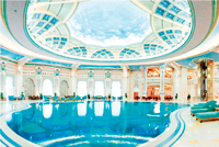 Dining venues include a signature restaurant featuring Middle Eastern favourites, an international buffet outlet, a lobby lounge serving traditional afternoon tea and a piano lounge. Other facilities include an indoor heated pool, a full-service health club and spa, tennis courts and a 1,000-sq-m, six-lane indoor bowling alley.