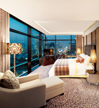 Directly overlooking the broad swathe of prime real estate that is the Royal Bangkok Sports Club – you can watch the weekend horse races from the comfort of your room – the hotel is superbly connected in many ways. Within weeks, it will have its own direct link into the adjacent Rachadamri BTS Skytrain station, while some of Bangkok’s top shopping malls and entertainment options are just a few minutes’ stroll away.
