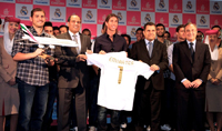 Pictured, left to right, Iker Casillas, Real Madrid captain and goalkeeper, Salem Obaidalla, Emirates' senior vice president, commercial operations, Europe & Russian Federation, Sergio Ramos, Real Madrid defender, Boutros Boutros, Emirates' divisional senior vice president, corporate communications, and Florentino Perez, president of Real Madrid.