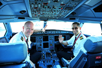 Emirates recently celebrated the launch of its new non-stop daily service to Denmark. Pictured here, Danish captain, Lars Schoyen and first officer Nabeel Al Balooshi who led the first flight to Copenhagen which was also joined by senior airline personnel.