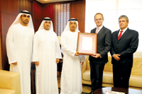 HH Sheikh Sultan receives his certification from British Ambassador, Dominic Jermey as Abu Dhabi Tourism Authority (ADTA) becomes the first governmental organisation within Abu Dhabi emirate to achieve the sought-after International Customer Service Standard (TICSS) 2010 accreditation to international benchmark level for all its services.