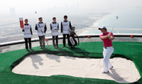 Jumeirah Group recently congratulated its global brand ambassador, golfer Rory McIlroy, on his victory in The Honda Classic at the PGA National Course, Palm Beach Gardens, Florida, USA. This victory has secured McIlroy the number 1 position in the Official World Golf Ranking for the very first time. Seen here, McIlroy takes one final practice shot on top of Burj Al Arab at the end of his 2011 season