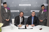 The signing ceremony was attended by Shane O’Hare, president and CEO, Royal Jet and Paul Beacall, co-founder and CEO of Eden Luxury Group.