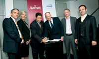 Marriott International and Destinations of the World (DOTW) have signed the Dynamic Distribution Agreement that will see Marriott International’s 3,500 hotels sold via DOTW’s worldwide network Seen here: Keith Fernandes of DOTW and Neal Jones from Marriott International (centre) with Phil Dickinson of DOTW; Samantha Barnett from Marriott International; Steve Harrop and James Burdett from DOTW