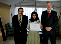 The management team at Sofitel Bahrain congratulated Heba Emam (centre), Government Affairs assistant manager in the Human Resources Department for being recognised and awarded by the Special Council of Training. The Award was for “Diligent Employee of the Year, Highest Achiever Bahraini. Seen here with Emam is director of Human Resources, Fahad Al Doy, and general manager Bert Plas.