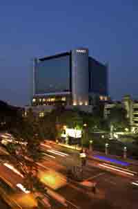 Designed by the renowned architecture firm of John Portman & Associates, the modern, eight-story Park Hyatt Hyderabad includes 185 guestrooms and 24 suites on the first six floors with 42 serviced apartments on the two uppermost floors. Clad in natural Madurai granite from South India, the façade is clean and modern with expansive glass doors and windows, and an impressive porte-cochere with a shimmering steel mesh ceiling fixture.