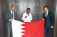 Maryam Yusuf Jamal, the Bahraini Olympic bronze medalist was welcomed back to the Kingdom at Sofitel Bahrain Zallaq Thalassa Sea and Spa where she recently stayed for three nights. Seen here Jamal (centre) with marketing manager Basel Qabouq (left) and director of food and beverage, Charbel Hanna.