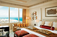 The lavish Abu Dhabi Suite at The St Regis Abu Dhabi will be suspended between two towers. This extravagant suite sprawls 1,085 sq m and will include three bedrooms, grand double-height ceiling majlis, a kitchen, dining room and movie theatre, as well as a fully-equipped gym and luxurious private spa.