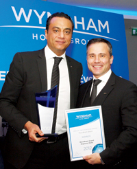 Wyndham Grand Regency Doha was recently awarded the “Wyndham Green” award for sustainability by Wyndham Hotel Group. Seen here, GM Ayman Lotfy (left) collect the award from Rui Barros, Wyndham’s senior vice president and managing director, London.