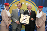 Emirates took home the highly-coveted World’s Best Airline award, presented by Skytrax at the 2013 World Airline Awards at the Paris Air Show in Paris, France. In addition, the airline won a further two awards for Best Middle East Airline and, for a record ninth year in a row, World’s Best Inflight Entertainment. The awards were collected by Emirates president Tim Clark (second from right), and presented by CNN’s Richard Quest (second from left).