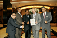 The Gulf Hotel Bahrain was recognised with ‘The Certificate of Excellence’ for the year 2013 from tripadvisor, based on the ratings from guests on its website. Seen here are Ryan Rene Advincula – marketing and communications manager, Ozino Cardoz, reservations manager, hotel manager Abdulla Siddiq Al-Awadi, area general manager Ian Mckie and Raed Mayoof, assistant director of sales (GCC).