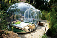Zen offers a completely transparent bubble with understated decoration enhanced by Japanese-inspired wooden furniture and tatamis and Glamour provides warm colours and a romantic atmosphere. Nature is another transparent bubble offering 360 degree immersion. This bubble brings the outside in with a natural atmosphere and grass flowerbed strewn with daisies.