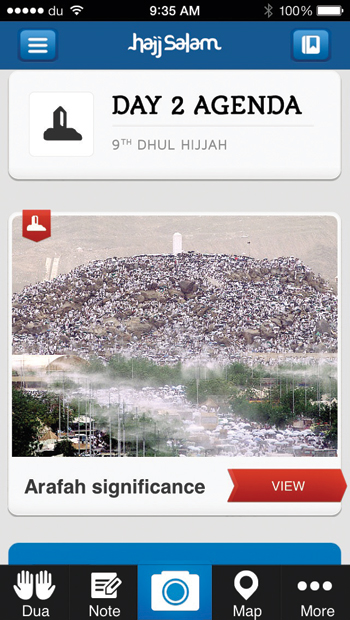 UmrahSalam is a mobile app that offers real-time, location- and process-based support to help fulfil religious obligations. Features include prompting pilgrims to read or hear the appropriate Duas (prayers) at the right time and place; counting the number of Tawaf while they are being performed and full camera, map and social media integration.