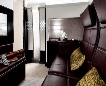 CABIN IN THE CLOUDSUnveiled on May 4 this year, The Residence by Etihad is anticipated to be the world’s most luxurious living space in the air, available on the airline’s A380 aircraft. The Residence accommodates single or double occupancy, features a living room, separate double bedroom and ensuite shower room. Guests in The Residence will also have a personal butler, trained at the Savoy Butler Academy in London.The A380 will feature revolutionary First Apartments, which are fully private suites with a separate reclining lounge seat and full-length bed, as well as a chilled mini bar, personal vanity unit and wardrobe. Etihad Airways has allocated the upper deck of the A380 to its premium cabins.On the B787 Dreamliner, Etihad Airways has designed an enhanced First Suite, adding many new features including a chilled mini-bar. The Business Studio and Economy Smart Seat will feature on both the A380 and the B787. Etihad Airways is introducing the latest Panasonic eX3 entertainment system across both fleets along with noise-cancelling headsets in all cabins. The A380 aircraft will have full mobile and wi-fi service while the B787 will be equipped with wi-fi.The Residence, which is certified by the European Aviation Safety Agency (EASA) for single or double occupancy, offers levels of luxury and total privacy normally found only on private jets. Each Etihad Airways A380 will offer a boutique version of The Residence with different colour palettes, table marquetry and custom carpets. The launch of the First Apartment on the A380 is set to redefine First Class service in airlines. Nine First Apartments will be installed on the upper deck in a 1-1 configuration creating the only single aisle First Class cabin in the industry. Each First Apartment, which has a 64-inch high sliding door, includes a reclining armchair and a full-length ottoman, both upholstered by Poltrona Frau. The ottoman transforms into a separate 80-inch long fully flatbed. The First Apartment has a 74 per cent larger footprint than the airline’s current award-winning First Class Suites. On both the A380 and the B787, Etihad Airways will launch its new Business Studios, which provide 20 per cent more personal space than the airline’s current business class seat. With its privacy, ample storage and surface space, the Business Studio has been designed with the premium business or leisure traveller in mind.