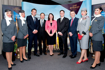 International superstar Ronan Keating was present at the official launch of Etihad Airways’ new daily services between Perth and Abu Dhabi in the Western Australian capital. The gala event was hosted by the airline’s chief commercial officer, Peter Baumgartner. Etihad Airways commenced daily, non-stop flights between Abu Dhabi and Perth on July 15 this year with an Airbus A330-200 offering 22 seats in business class and 240 in the economy cabin.