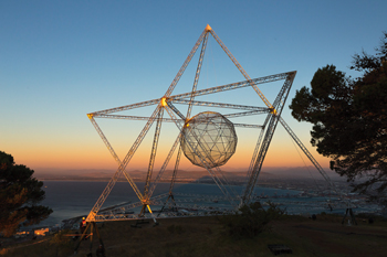 The 24-metre high sun-shaped sculpture, “SunStar”, was unveiled recently on Signal Hill in Cape Town. The sculpture was conceptualised and designed by Cape Town artist and founder of the Robben Island Art Company and Trust (RIACT), Christopher Swift, and is also a showcase project for Cape Town: Design Capital of the World 2014. The SunStar is a temporary art installation and will stand on top of Cape Town’s Signal Hill. It was constructed in large part from the steel from the original fence that once surrounded Robben Island. Sun International, sponsors of the project, says that this critical component of the sculpture showed how the ultimate symbol of Apartheid has been transformed into an inspiring piece of art that stands as an invitation to the world to share their hope for the future of South Africa.Sun International chief marketing and strategy officer Rob Collins, says: “The SunStar is an emblematic of and a visual reminder to South Africans of how far the country has come since our first democratic elections, but also of the journey yet to come. The SunStar project is closely aligned to our commitment to community, environment and sustainability and we are very pleased to be associated with its symbolism and message.” The site for the SunStar sculpture was chosen for its impressive views over the city and to enable locals and tourists easy access. Swift’s design importantly takes the environment and sustainability into account too. The sculpture features a solar powered light system made up of low-power LED (light emitting diode) strip-lighting and flood light support which will light up the sculpture at night. In daylight and after dark, the sculpture is clearly visible from the air and visitors flying into Cape Town will be treated to aerial views of the installation as they come in to land. The sculpture has been approved by SanParks, the Robben Island Museum, the City Of Cape Town, and the Department of Public Works. The installation of the sculpture has been in itself a remarkable project. Following comprehensive environmental and geotechnical assessments, the SunStar has been installed using an innovative ground anchorage system rather than conventional concrete foundation bases. This system is specifically designed for use in ecologically sensitive areas or areas where excavation is not possible, and requires no earth works or concrete pouring and allows the soil at the base to remain unsealed. It also means the structure can be easily removed after the permit period. The project is also likely to have a positive impact for tourism in Cape Town with the SunStar being an added draw-card to Signal Hill for local and international tourists alike. Signal Hill is already a well-visited spot by tourists, but the addition of the SunStar will add a new dimension to something many have experienced previously.