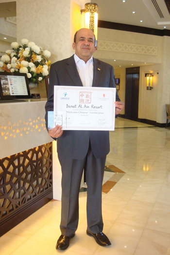 Danat Al Ain Resort received the Bronze Certificate for Welcome Chinese standard from China Tourism Academy (CTA). Welcome Chinese Certification is the new hospitality Standard specifically dedicated to Chinese travellers. To qualify for a Bronze Certification, a hotel must broadcast Chinese television channels. The resort also provides Union Pay services, allowing Chinese guests to use their Union Pay cards.