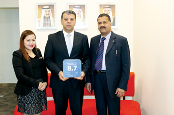 Ramee Grand Hotel & Spa was recognised as a top performing hotel based on guest reviews on Booking.com. The property achieved an overall review score of 8.7 on Booking.com for 2014, with thousands of reviews by guests from around the world. Pictured with the award are Ramee Grand Hotel & Spa assistant marketing manager, Cynthia Narvaez; director of sales and marketing, Ali Al Jazzazi; and group general manager of Ramee Group of Hotels –Bahrain, Shantharam Shetty.