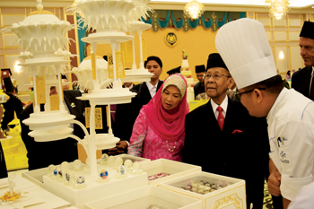 The Kuala Lumpur Convention Centre presented a 40-kg handcrafted cake to Malaysian supreme head of state, Yang Di-Pertuan Agong Tuanku Abdul Halim Mu’adzam Shah, on his official birthday. Made of four compartments of black forest mini cakes, black forest crinkle cookies, black forest cupcakes and black forest pralines, all sprinkled with edible gold dust, it was two months in the making and took two weeks to assemble.