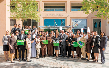 Sofitel Dubai Jumeirah Beach, UAE, recently passed the audit to become ISO14001 certified. The hotel has launched a number of new environmentally friendly initiatives and further developed existing practices in pursuit of this accreditation. Above, hotel staff pose for a picture following the certification.