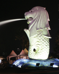 The famous Marlion (mermaid and lion) statue at the Theatre on the Bay, |