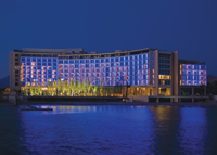 The hotel is creatively designed in a tear-drop shape, guaranteeing sea views for all 201 lavishly-furnished rooms and suites.
