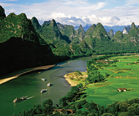 Sailing from Long Chuan Ping Jetty to Die Cai Mountain, guests can enjoy a classical Chinese guzheng (a Chinese plucked zither) performance as the boat journeys across a 10-km natural river gallery, passing 10 of Guilin’s most famous mountains such as Elephant Trunk Hill, Fubo Hill, Seven Star Hill and Laoren Hill.