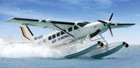 The Cessna 208A Caravan aircraft offers water take-off and landing, individual windows and comfortable leather seats.