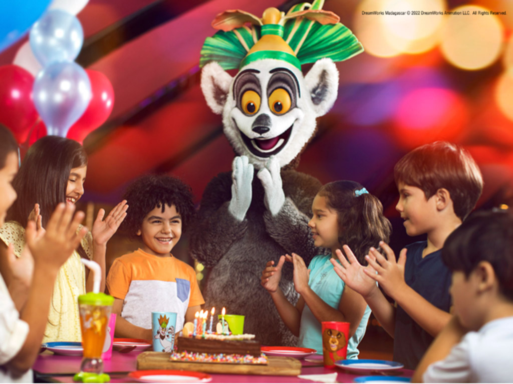 Motiongate Dubai first welcomes birthday guests at a luxurious VIP lounge before leading them to one of four themed dedicated party areas - Dragon Flame Grill (How to Train Your Dragon), Baby Brent’s Luncheonette (Cloudy with a Chance of Meatballs), King Julien’s Slide Show Café (Madagascar), and Very Smurfy Café (The Smurfs) for a personalised celebration featuring a variety of children’s favourite party foods and drinks.