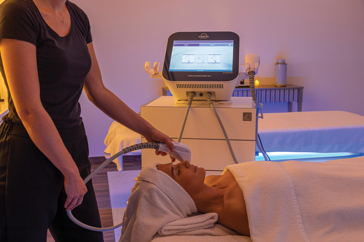 The 600 m² Spa by Carita, the brand's first flagship outside Paris, delivers technical facial expertise through seven therapy rooms. Signature treatments like Rejuvenic Gold and Crystal Pro.Morphose R.F. leverage advanced technology for immediate, visible results, catering to delegates between high-profile screenings.